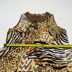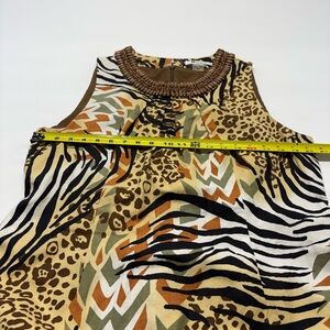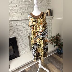 Peter Nygard Tribal Animal Print Shift Dress with Beaded Neckline Size 16