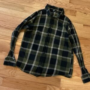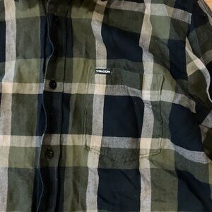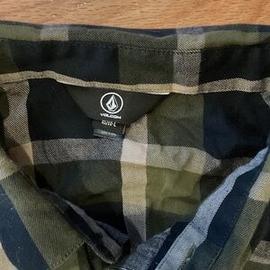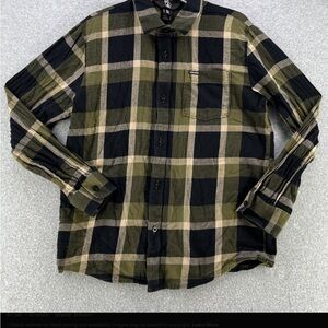 Volcom Olive, Black & Tan Plaid Button-Down Shirt