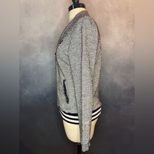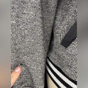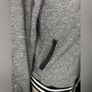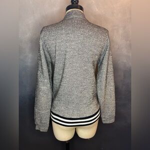 • Color: Heather Gray with black & white striped hem