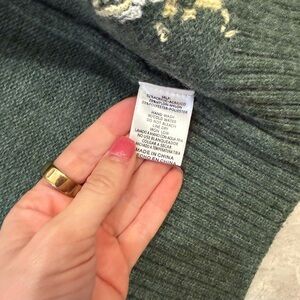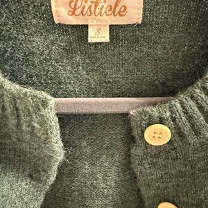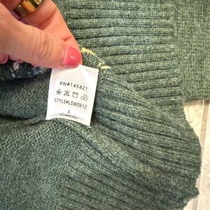 Charming dark green cardigan with floral accents. Features button-up front. Cozy and stylish.