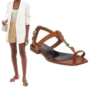 NEW Saint Laurent Cassandra YSL Logo T Strap Toe Ring Sandal Brown