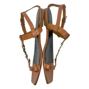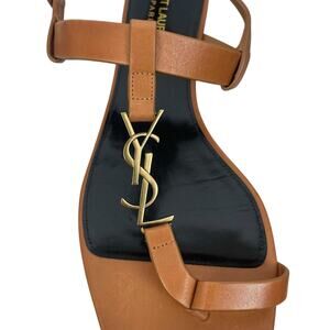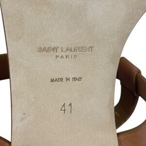 Saint Laurent Cassandra YSL Logo T Strap Toe Ring Sandal Brown Size 41