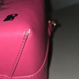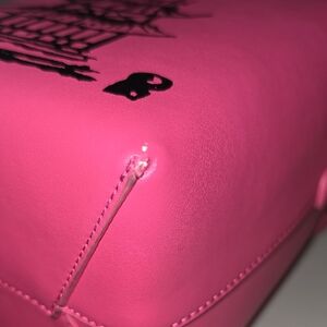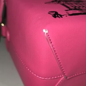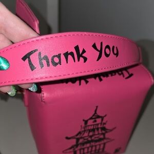Stylish pink crossbody bag with a bold pagoda graphic. Lightweight and easy to carry for everyday use. Features a secure flap and detachable strap for versatile wear. The pink color adds a vibrant, fun touch to any outfit.