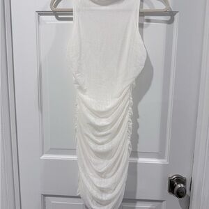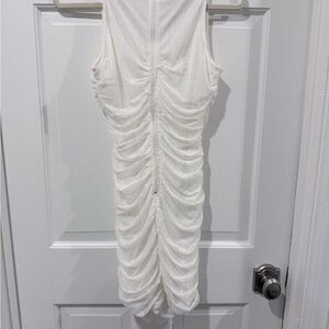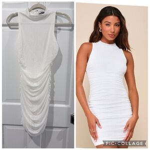 Lulu's White Mesh Ruched Sleeveless Mock Neck Bodycon Mini Dress Size S