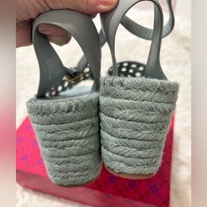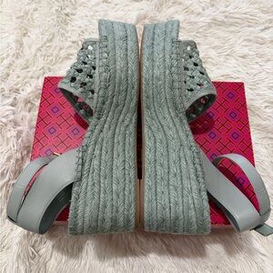 TORY BURCH Woven Goat Leather Flatform Espadrille Sandal - Size 11 - NIB - blue celadon color
