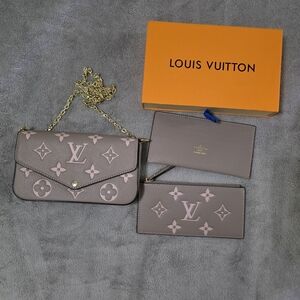 Louis Vuitton Taupe & Pink Monogram Chain Wallet Set