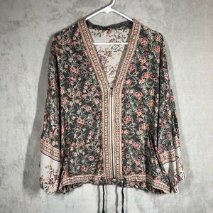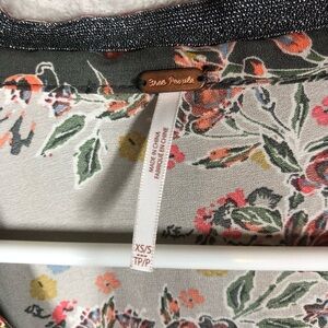 Free People Wildflower Zip Kimono Too Size XS/S Black Floral Sheer Baggy Nature