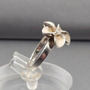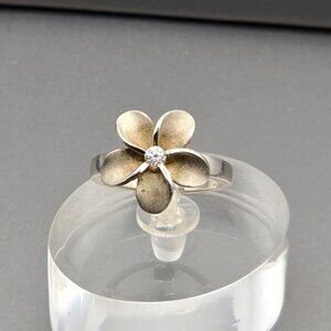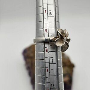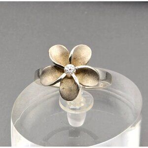 Sterling Silver Plumeria Flower Crystal Ring Size 5.5 Frosted Petal Hawaiian