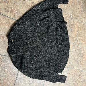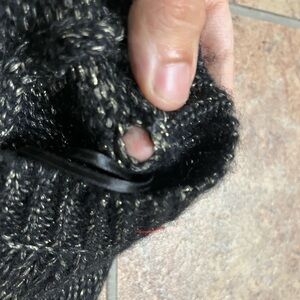 Elegant black knit sweater with gold accents. Ideal for stylish layering.there is a hole in the back