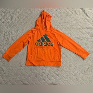Bright orange hoodie with Adidas logo. Soft and cozy for active play.