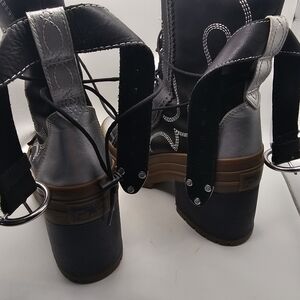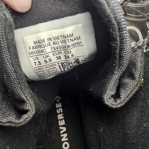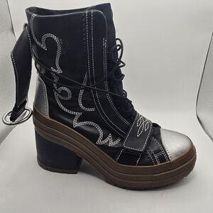 No box. Never worn. The product is a Converse Chuck Taylor All Star GR82 Platform Black Boot in a women's size 7.5. This boot is designed for cowgirls with a multicolor exterior featuring a star theme. Made with a synthetic upper material, it combines the iconic Converse brand with a trendy platform style, making it a unique and stylish choice for women looking to make a statement with their footwear.
