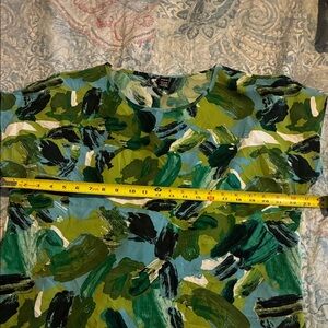 Elevate your wardrobe with this stylish women's top featuring an abstract green and blue pattern. Perfect for any casual outing. No rips, holes, or stains as you can see in photos. The item in the pictures is the exact item you will be receiving when bought, please review each picture carefully. If there are flaws, I will add them in the description. I try my best to describe each piece the best I can as how I see them. Please refer to measurements in pictures. Colors may vary due to lighting or variations of devices pictures are viewed. If you have any questions, please let me know. Thank you for looking at my closet. Happy Poshing and have a great day! 😊 26-A1