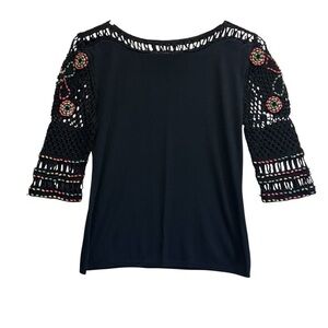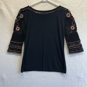 Joseph A’ Qu’est Black Embellished 3/4 Sleeve Blouse. Size M
