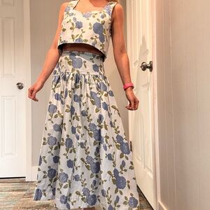 Chic Floral Blue and White Skirt Set