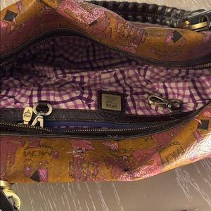 MCM Cognac Visetos Shoulder Bag with Pink Metallic Accents