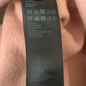 All Saints Anya Pink Wool Blend Longline Coat XS