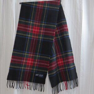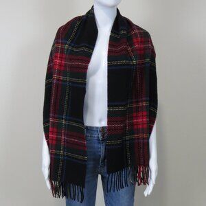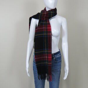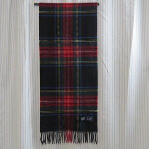 GAP 100% Wool Plaid Scarf Made in Italy Black Stewart Tartan - Large