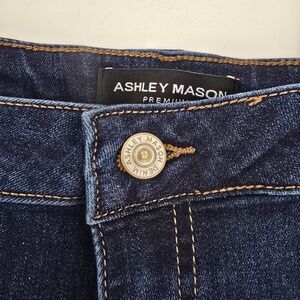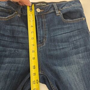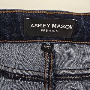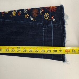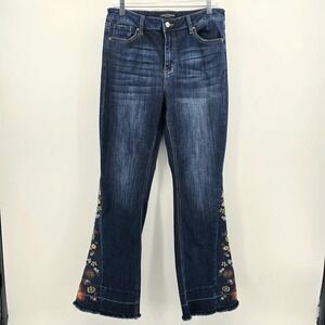 Ashley Mason Womens Flare Jeans Floral Embroidered Raw Hem Dark Wash 13/31
