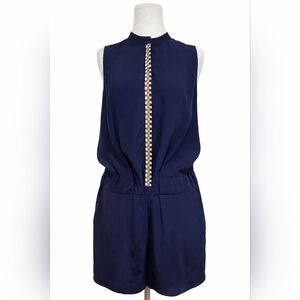 Tory Burch navy silk romper, the perfect blend of luxury and modern minimalism.
