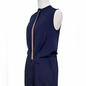 Tory Burch romper, silk romper women, designer romper, navy blue romper, sleeveless romper, luxury romper, silk playsuit, summer romper outfit, resort wear romper, vacation outfit women, chic minimalist romper, elastic waist romper, lightweight silk outfit, polished casual outfit.