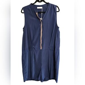 NWT Tory Burch Marguerite Blue Sleeveless Silk Designer Resort Romper Size XL