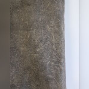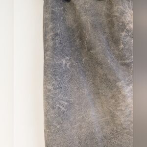Zipper at back. Unique bottom trim hem, almost abstract edgy kind of cut. Belt can be removable, but adds all the flair to this pencil silhouette skirt! 100% quality leather with poly inner lining.