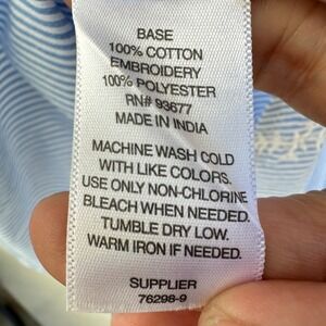 St John's Bay Top Embroidered Ruffle Neck Cotton Stripe Top Small Summer