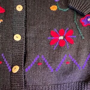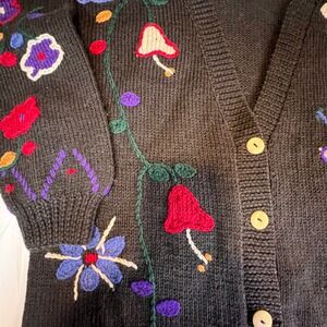 Putumayo S Wool Cardigan Women Black Embroidered Mushroom Floral Vintage Uruguay