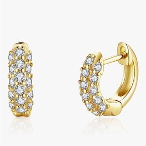 ✨ 18K Gold Vermeil Triple Pavé Huggie Hoops – 14mm