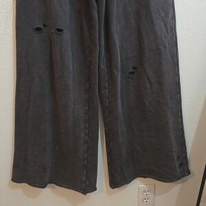 Arie Wide Leg Sweatpants Distressed Gray Small