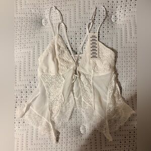 NWT Out From Under Ever After White Lace Scalloped Flyaway Tie Front Cami - S