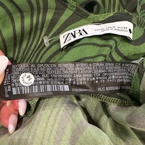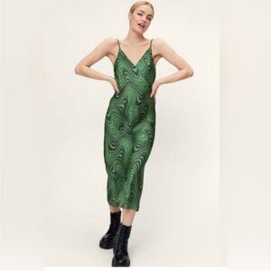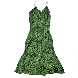 Zara Lara Psychedelic v-neck satin green Midi Slip Dress XL