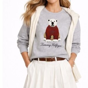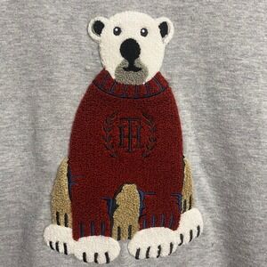 Tommy Hilfiger Polar Bear Looped Appliqué Logo Preppy Gray Sweater Size Large