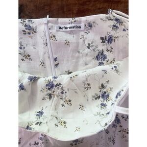 EUC Reformation Mariana Madeline Floral Flounce Bustier Linen Mini Dress 12