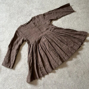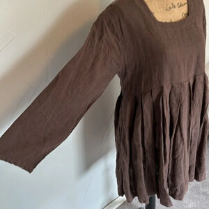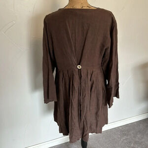 ALY WEAR Linen Brown Choco Washed Babydoll Tunic Dress EUC M