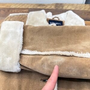 Bernardo Suede Faux Shearling Patchwork Trim Coat Jacket Womens XLP Southwestern Fall Winter Warm Bohemian Soft Festival