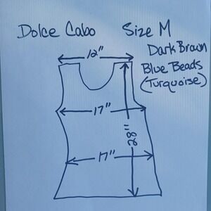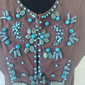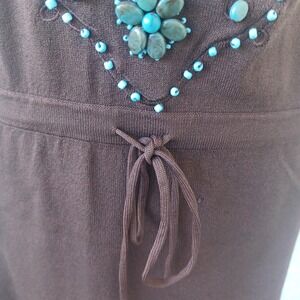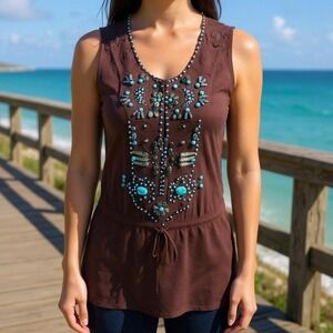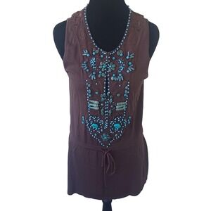 Dolce Cabo Womens M Dark Brown Turquoise Beaded Embellished Sleeveless Top 5708