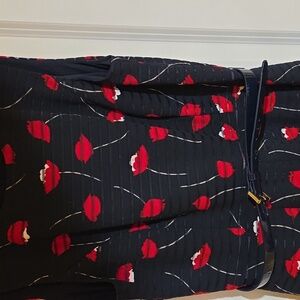 Tommy Hilfiger Elegant Navy Blue and Red Floral Dress