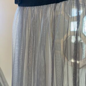 This elegant sheer gray skirt adds a touch of sophistication to any outfit. Perfect for both casual and formal occasions.