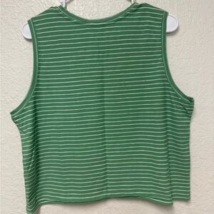 Stylish sleeveless tee with green and white stripes. Ideal for everyday comfort.