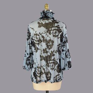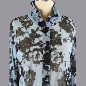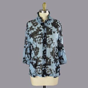 TERRA SJ APPAREL FLORAL WIRE STAND UP RUFFLE COLLAR BLOUSE