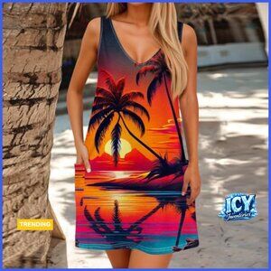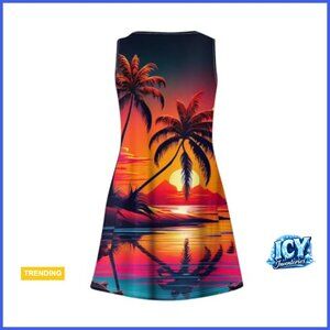 A loose-fitting, midi-length dress designed for comfortable wear at the beach, summer festivals, or casual daily outings. Features a flattering A-line silhouette and racerback style for easy, breezy style.