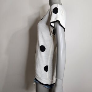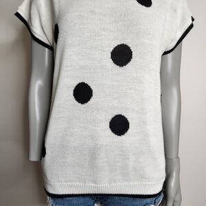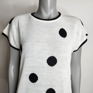 Vintage "Surrey Classics" Black Polka Dot Short Sleeve Knit Top Size XL