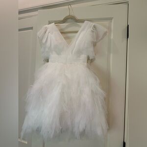 Mac Duggal 20505 Flutter Ruffle Sleeve Tiered Mini Dress Size 2 NWT White