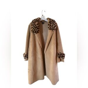Coco and Carmen L:XL faux Fur Felt Trench wrap coat. 🧥Animal Print Detail Cuff