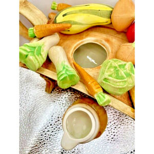 This beautifully handcrafted tea pottery is perfect for any occasion. The handmade and painted design with vegetables, making it a unique addition to your kitchen or collectibles collection. The ceramic material ensures durability, while the medium size allows for many placements. The multicolor design adds a touch of novelty to your tea set, making it an ideal choice for all occasions. Made in the England, this tea pottery is a must-have for any tea lover or collector.