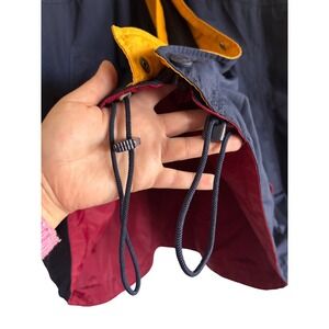 Conquer the elements in this vibrant Eddie Bauer windbreaker. The striking navy, red, and yellow colorblock design brings a retro flair to this functional outerwear essential. Its lightweight construction offers protection without bulk, perfect for layering. The attached hood and adjustable drawstring hem provide customizable comfort and coverage, while the zippered pockets keep your essentials secure. Ideal for outdoor adventures, casual outings, or layering up for unpredictable weather.