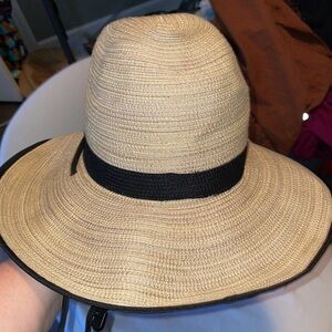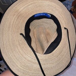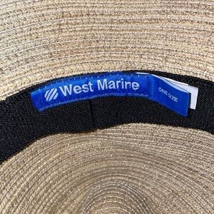 West Marine Wide Brim Hat Fishing Outdoor Chin Strap OS Tan with Black Stripe. Very good preowned condition. 100% polyester. Newer style from 2020. Unisex. Straw