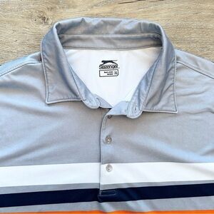 Slazenger Men’s Golf Sport Polo Shirt Size XL Gray Striped Front Breathable