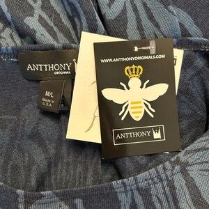 Anthony Originals Poncho Knit Sweater Top Women’s SZ M/L in Blue Tonal Print NEW
